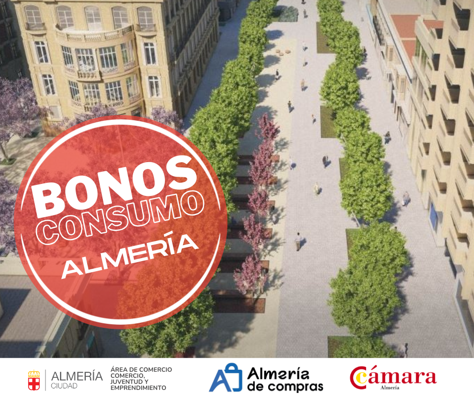 El Ayuntamiento de Almería, junto con la Cámara de Comercio de Almería, ponen en marcha la campaña “BONOS AL CONSUMO ALMERIA 2026”, que tiene por objetivo incentivar las compras en el comercio local y dinamizar la actividad económica. Los bonos estarán activos cada lunes desde las 8:30 de la mañana hasta el fin de la campaña.