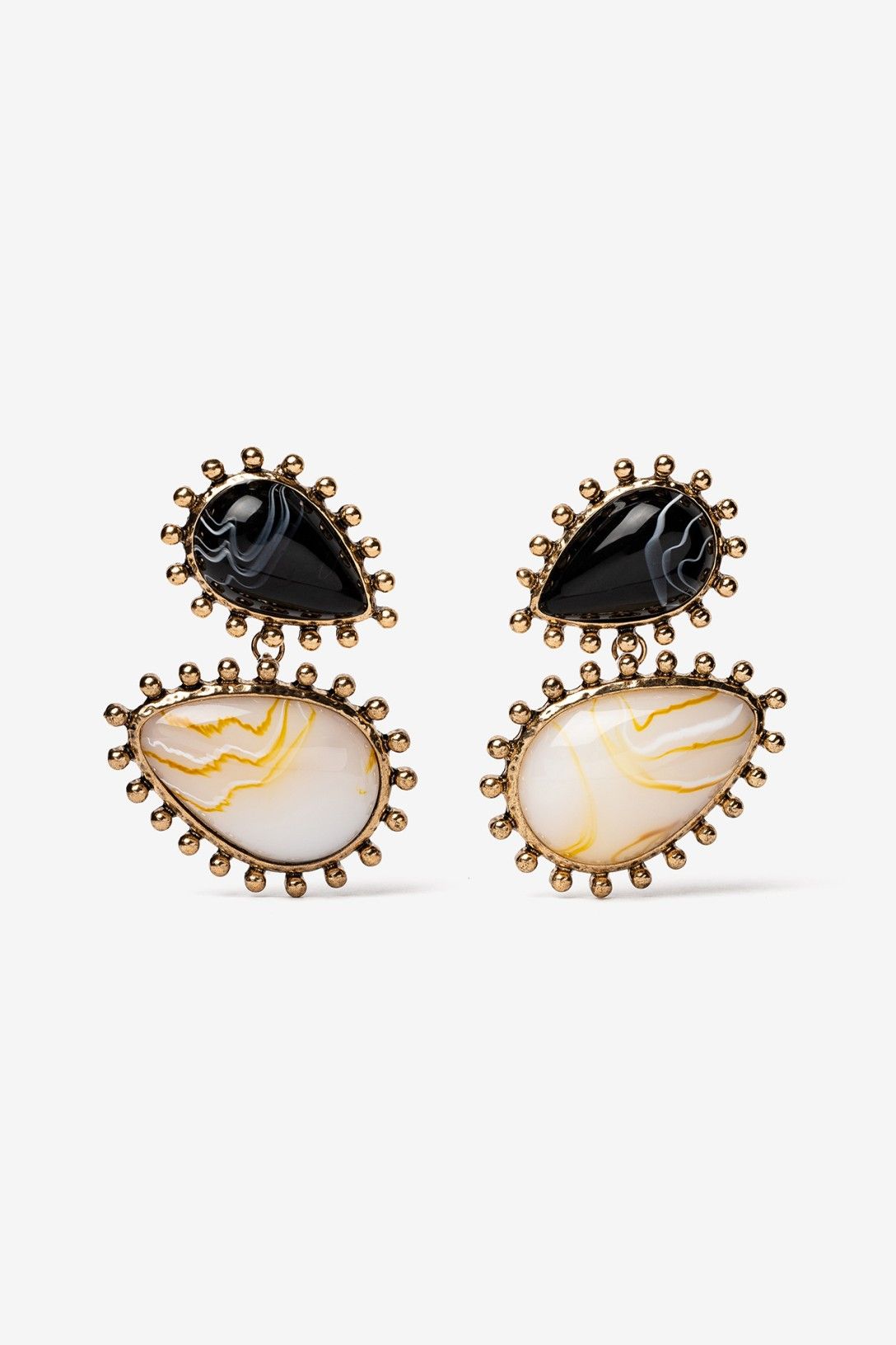 Pendientes metálicos con aplicaciones acrílicas bicolor. Cierre con tope. Tamaño grande.